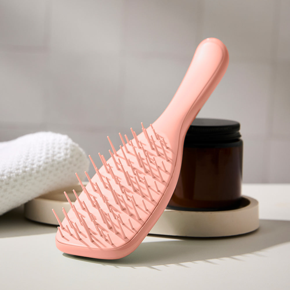 「エクストラ ジェントル」は、年齢とともに細く抜けやすくなった髪をやさしくいたわるヘアケアブラシ。ブラッシング時の摩擦や引っ張りの負担に配慮した配列で、不要な抜け毛・切れ毛が起きにくい状態を保ちながら整えます。髪をいたわる安心感と、スムーズに整う仕上がりのよさを両立し、毎日のヘアケアをよりやさしく、より安心して続けられるものにします。
